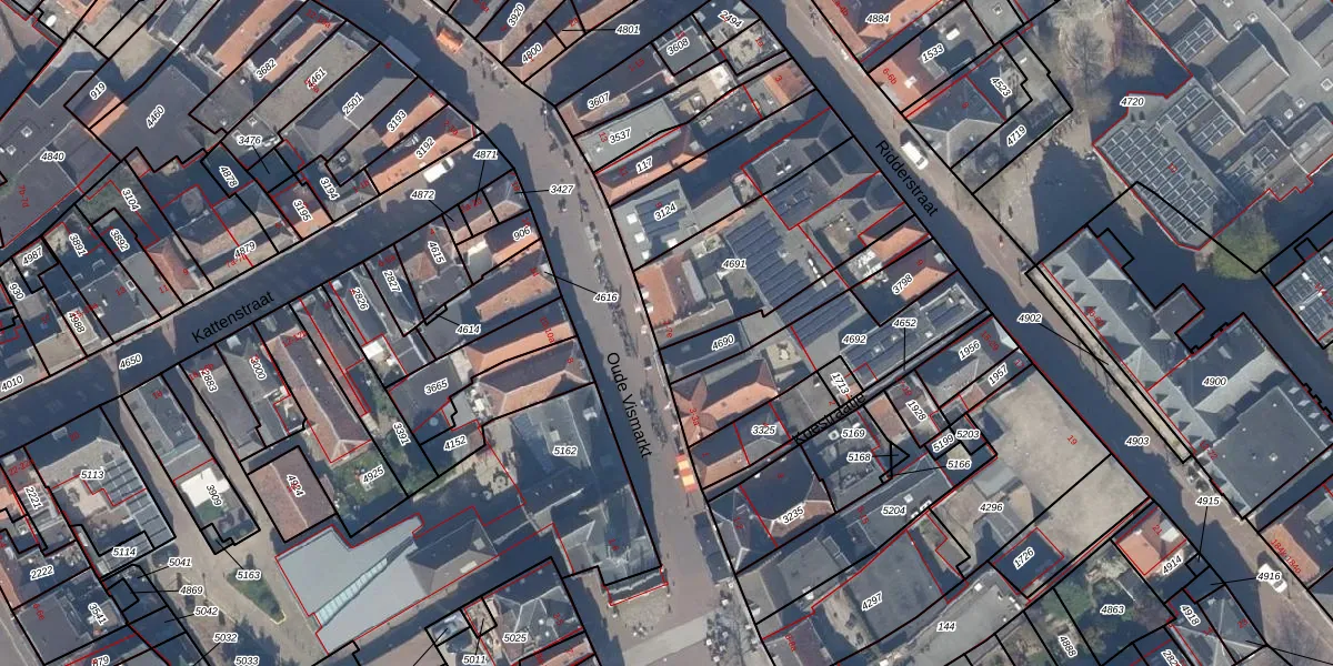 Het perceel waarop Oude Vismarkt 7 staat heeft een oppervlakte van 580 m². Dit is een groot perceel. De perceeloppervlakte wordt geregistreerd door het Kadaster. Gedetailleerde informatie over de maten van dit perceel kunt u vinden in het rapport Kadastrale kaart met maatvoering van Oude Vismarkt 7.