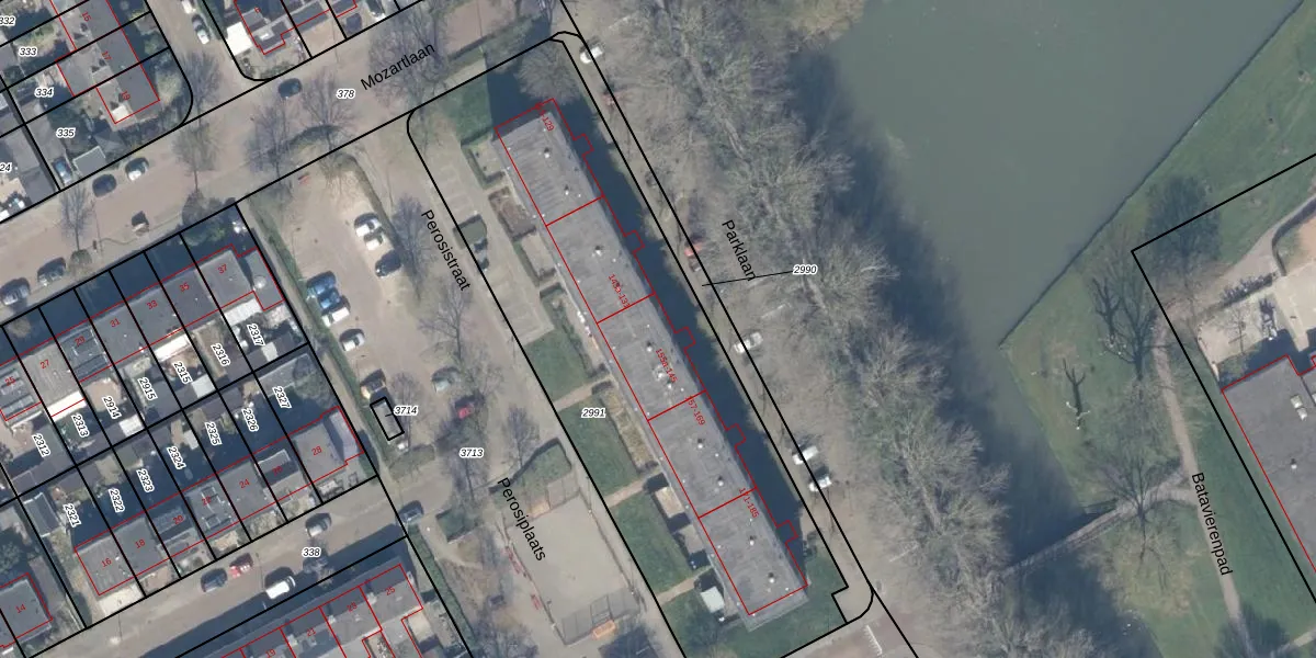 Het adres ligt op het perceel CLB00-K-2991, dat zich in de kadastrale gemeente Culemborg bevindt. De oppervlakte van het perceel is 2655 m². Dat is groter dan gemiddeld in Culemborg, waar de gemiddelde perceeloppervlakte op 2281,59 m² ligt. De grootste perceeloppervlakte in de kadastrale gemeente is 37,0 ha. De kleinste oppervlakte bedraagt 0 m². Op het perceel liggen in totaal 38 adressen. In de Basisregistratie Kadaster (BRK) werden de grenzen van het perceel geregistreerd op 07-07-2000.