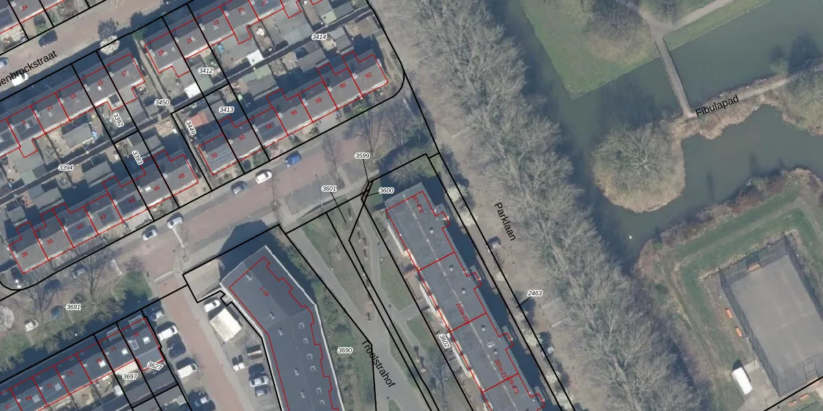 Parklaan 187 is gelegen op kadastraal perceel CLB00K3602. Deze kadastrale aanduiding is uniek en wordt gebruikt door het Kadaster om eigendomsrechten en andere zakelijke rechten vast te leggen. Het perceel maakt onderdeel uit van de kadastrale gemeente Culemborg.