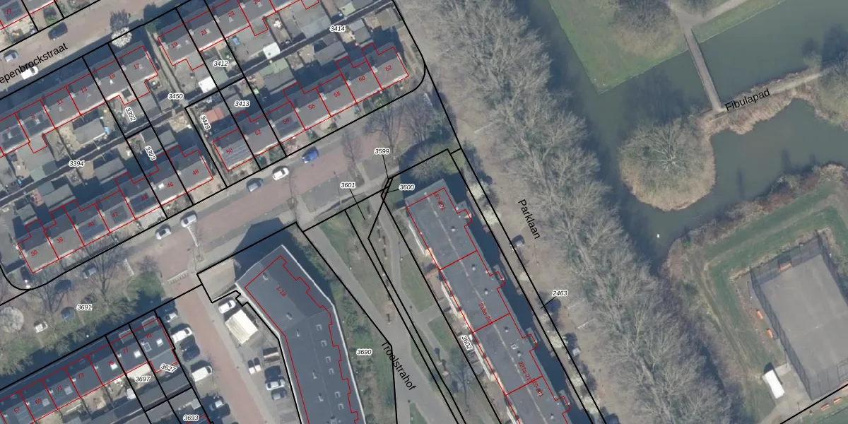 Parklaan 191 is gelegen op kadastraal perceel CLB00K3602. Deze kadastrale aanduiding is uniek en wordt gebruikt door het Kadaster om eigendomsrechten en andere zakelijke rechten vast te leggen. Het perceel maakt onderdeel uit van de kadastrale gemeente Culemborg.