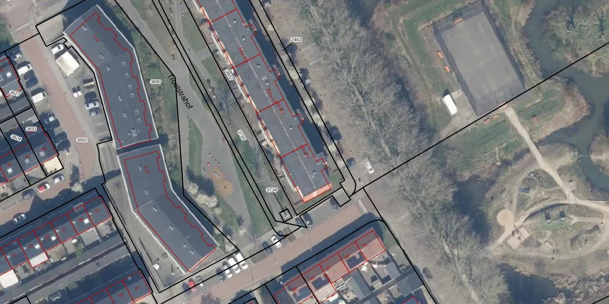 Het adres ligt op het perceel CLB00-K-3602, dat zich in de kadastrale gemeente Culemborg bevindt. Het perceel is 1765 m² groot. Dat is kleiner dan de gemiddelde perceeloppervlakte in Culemborg, dat op 2281,59 m² ligt. Het grootste perceel in de kadastrale gemeente is 37,0 ha. Het kleinste perceel heeft een oppervlakte van 0 m². Op het perceel liggen in totaal 38 adressen. De huidige grenzen van het perceel zijn digitaal in de Basisregistratie Kadaster (BRK) geregistreerd op 06-04-2011.