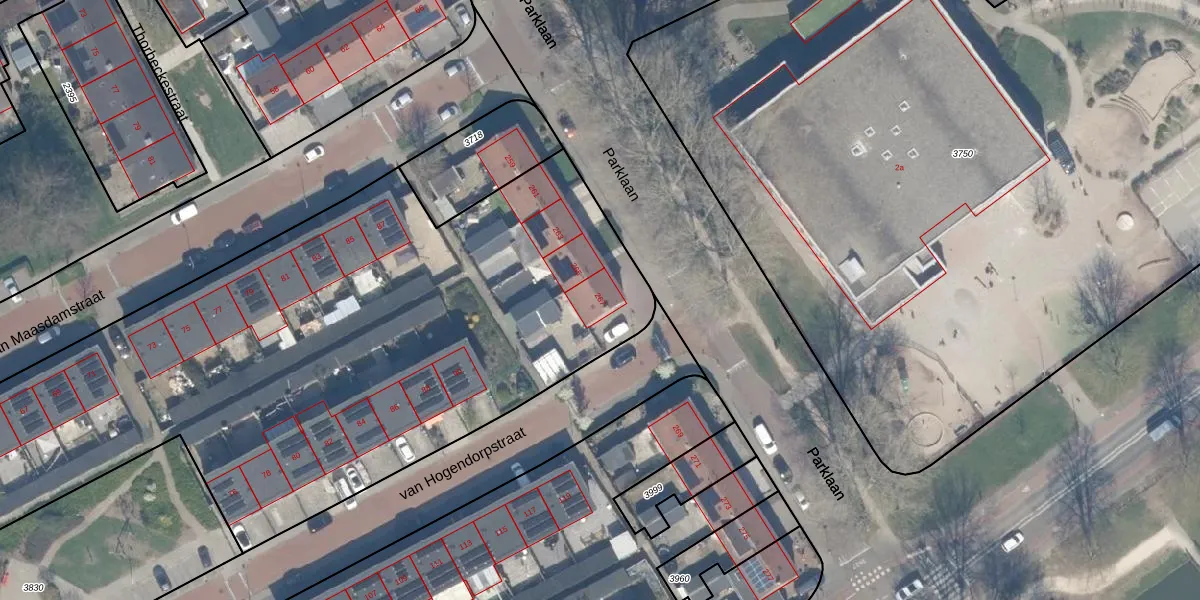 Parklaan 267 is gelegen op kadastraal perceel CLB00K3828. Deze kadastrale aanduiding is uniek en wordt gebruikt door het Kadaster om eigendomsrechten en andere zakelijke rechten vast te leggen. Het perceel maakt onderdeel uit van de kadastrale gemeente Culemborg.