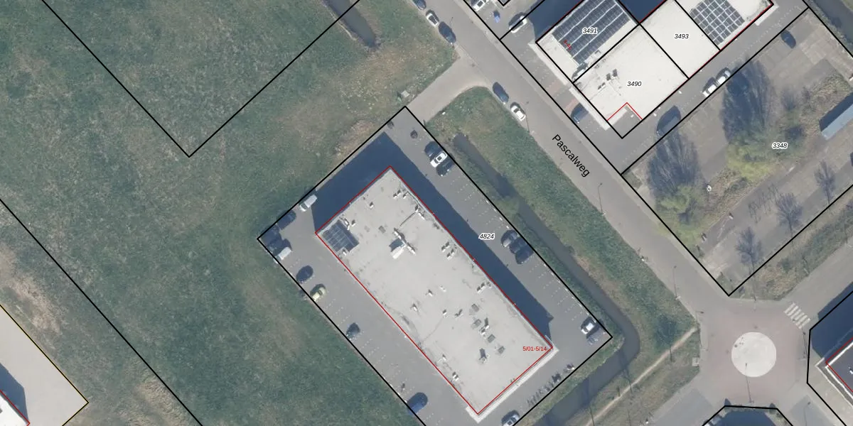 Het perceel waarop Pascalweg 5-06 staat heeft een oppervlakte van 3385 m². Dit is een zeer groot perceel. De perceeloppervlakte wordt geregistreerd door het Kadaster. Gedetailleerde informatie over de maten van dit perceel kunt u vinden in het rapport Kadastrale kaart met maatvoering van Pascalweg 5-06.