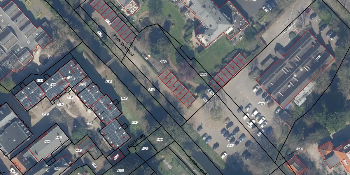 Pater Wolffpad 14 is gelegen op kadastraal perceel CLB00B2498. Deze kadastrale aanduiding is uniek en wordt gebruikt door het Kadaster om eigendomsrechten en andere zakelijke rechten vast te leggen. Het perceel maakt onderdeel uit van de kadastrale gemeente Culemborg.