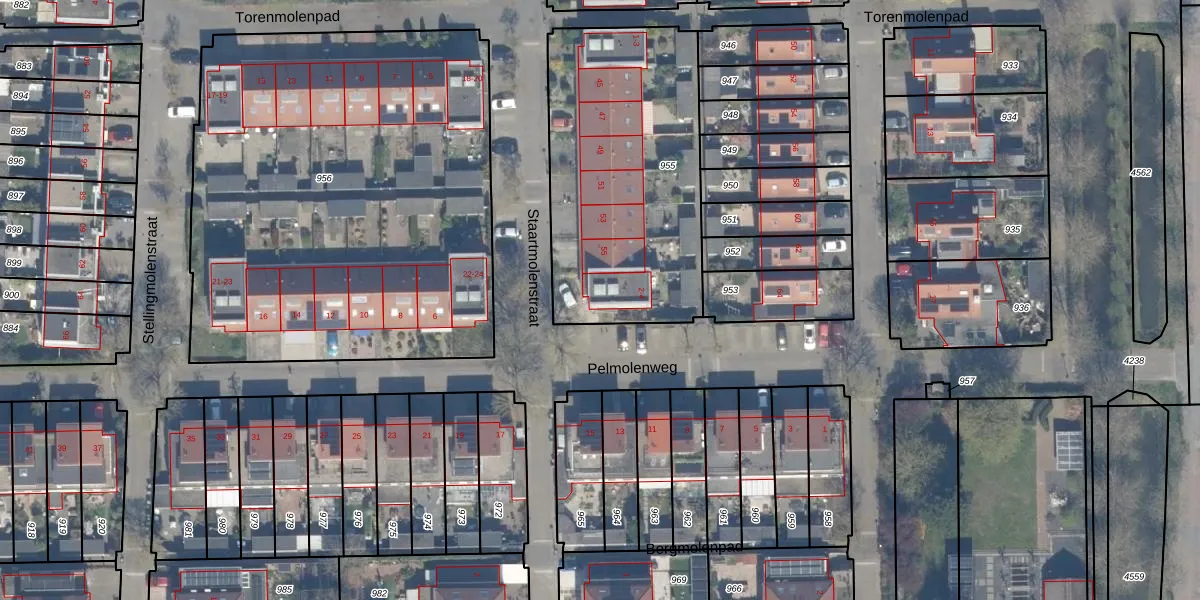 Pelmolenweg 4 is gelegen op kadastraal perceel CLB00N955. Deze kadastrale aanduiding is uniek en wordt gebruikt door het Kadaster om eigendomsrechten en andere zakelijke rechten vast te leggen. Het perceel maakt onderdeel uit van de kadastrale gemeente Culemborg.