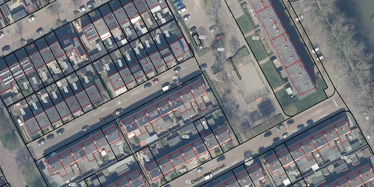Het perceel waarop Perosistraat 23 staat heeft een oppervlakte van 1929 m². Dit is een zeer groot perceel. De perceeloppervlakte wordt geregistreerd door het Kadaster. Gedetailleerde informatie over de maten van dit perceel kunt u vinden in het rapport Kadastrale kaart met maatvoering van Perosistraat 23.