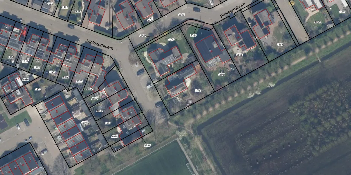 Gebruik de zoekbalk of klik op een perceel voor informatie over de adressen binnen dit perceel.