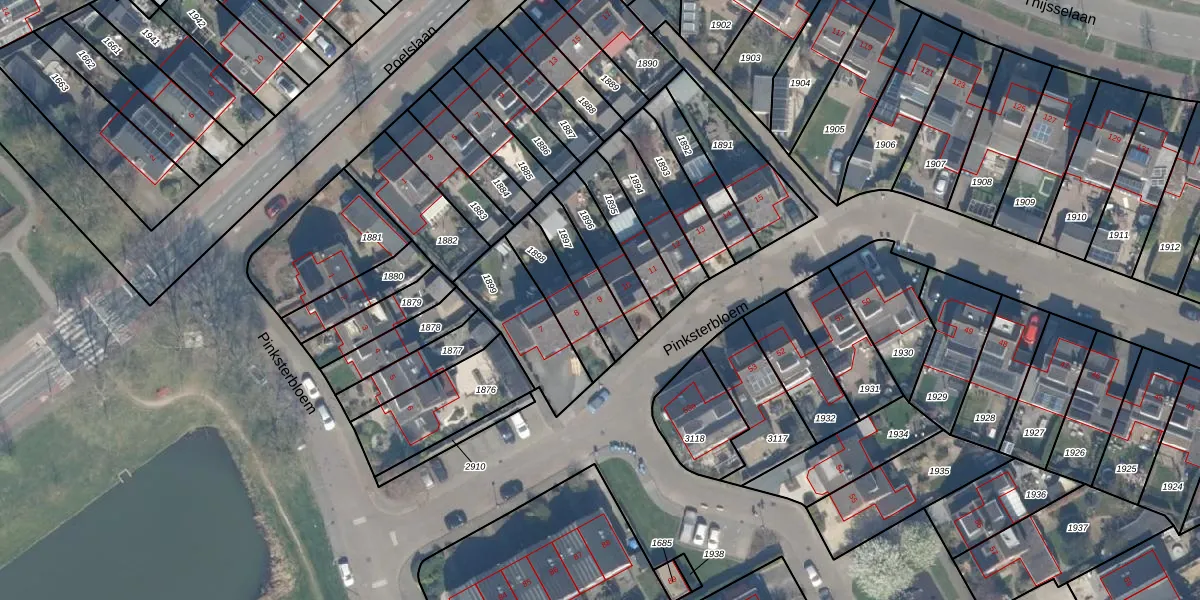 Gebruik de zoekbalk of klik op een perceel voor informatie over de adressen binnen dit perceel.