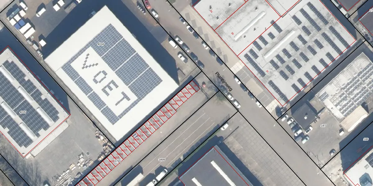 Het perceel waarop Plantijnweg 1-a-02 staat heeft een oppervlakte van 1535 m². Dit is een zeer groot perceel. De perceeloppervlakte wordt geregistreerd door het Kadaster. Gedetailleerde informatie over de maten van dit perceel kunt u vinden in het rapport Kadastrale kaart met maatvoering van Plantijnweg 1-a-02.