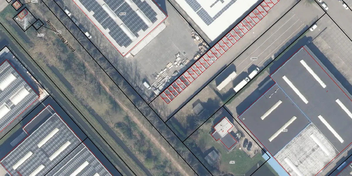 Het perceel waarop het adres ligt is CLB00-N-3765. De afkorting 'CLB00' staat voor kadastrale gemeente Culemborg. Het perceel is kleiner dan gemiddeld in Culemborg. Het perceel is 1535 m² groot, terwijl het gemiddelde ligt op 2281,59 m². Het grootste perceel in de kadastrale gemeente is 37,0 ha. Het kleinste perceel heeft een oppervlakte van 0 m². Op het perceel liggen in totaal 32 adressen. De huidige grenzen van het perceel zijn digitaal in de Basisregistratie Kadaster (BRK) geregistreerd op 22-11-2017.