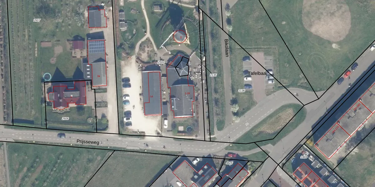 Het perceel waarop Prijsseweg 1 staat heeft een oppervlakte van 4770 m². Dit is een zeer groot perceel. De perceeloppervlakte wordt geregistreerd door het Kadaster. Gedetailleerde informatie over de maten van dit perceel kunt u vinden in het rapport Kadastrale kaart met maatvoering van Prijsseweg 1.