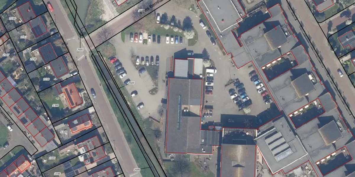 Het perceel waarop Prins Bernhardstraat 1-a staat heeft een oppervlakte van 1,8 ha. Dit is een zeer groot perceel. De perceeloppervlakte wordt geregistreerd door het Kadaster. Gedetailleerde informatie over de maten van dit perceel kunt u vinden in het rapport Kadastrale kaart met maatvoering van Prins Bernhardstraat 1-a.