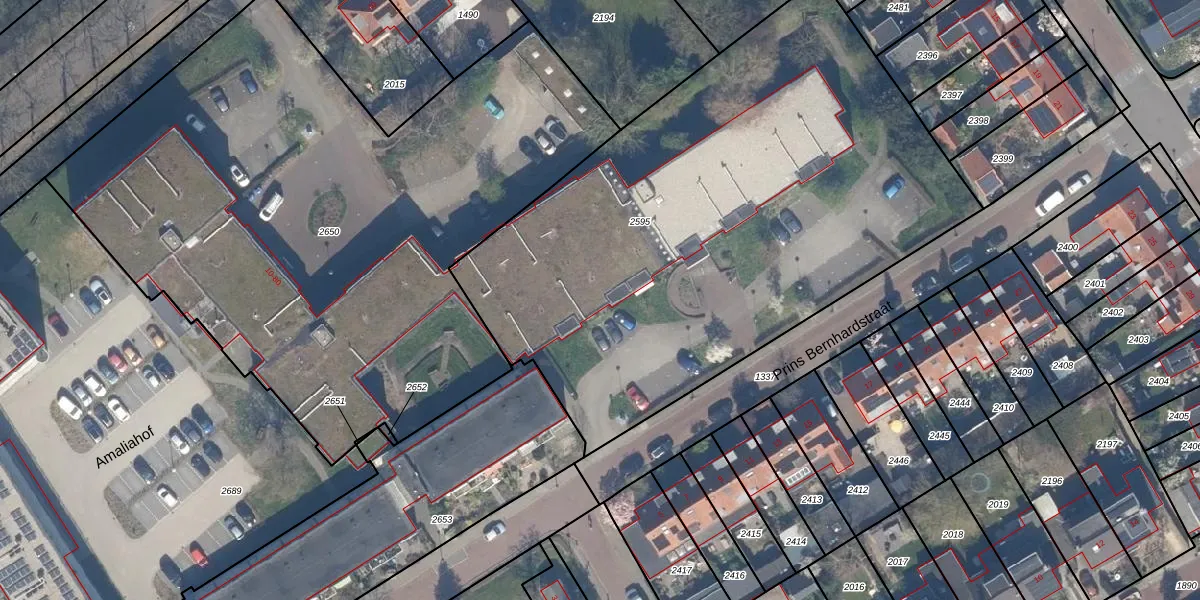 Het perceel waarop Prins Bernhardstraat 52 staat heeft een oppervlakte van 3375 m². Dit is een zeer groot perceel. De perceeloppervlakte wordt geregistreerd door het Kadaster. Gedetailleerde informatie over de maten van dit perceel kunt u vinden in het rapport Kadastrale kaart met maatvoering van Prins Bernhardstraat 52.