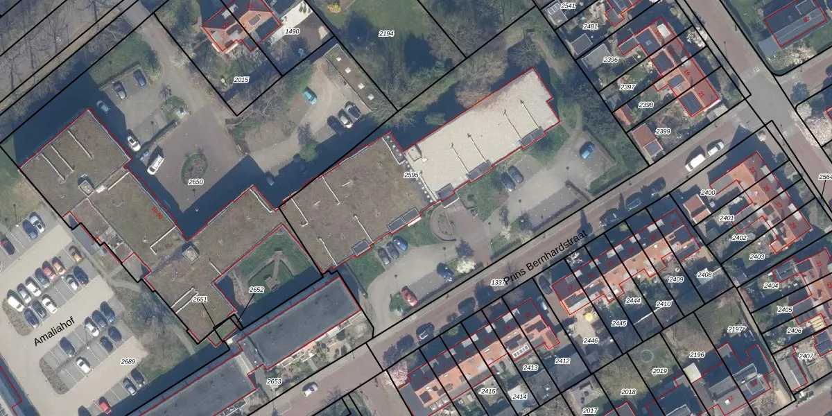 Het perceel waarop Prins Bernhardstraat 58 staat heeft een oppervlakte van 3375 m². Dit is een zeer groot perceel. De perceeloppervlakte wordt geregistreerd door het Kadaster. Gedetailleerde informatie over de maten van dit perceel kunt u vinden in het rapport Kadastrale kaart met maatvoering van Prins Bernhardstraat 58.
