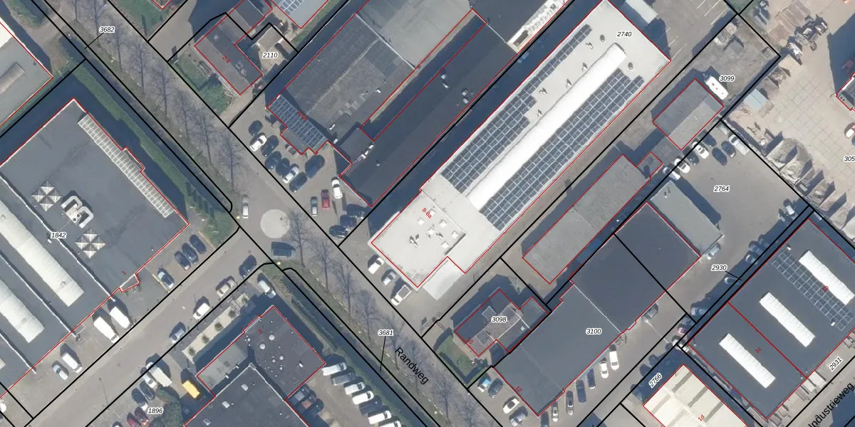 Het perceel waarop Randweg 8 staat heeft een oppervlakte van 3100 m². Dit is een zeer groot perceel. De perceeloppervlakte wordt geregistreerd door het Kadaster. Gedetailleerde informatie over de maten van dit perceel kunt u vinden in het rapport Kadastrale kaart met maatvoering van Randweg 8.