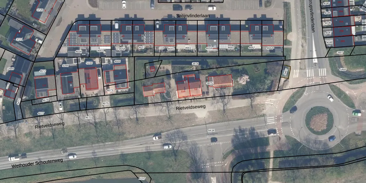 Rietveldseweg 11-a is gelegen op kadastraal perceel CLB00N3875. Deze kadastrale aanduiding is uniek en wordt gebruikt door het Kadaster om eigendomsrechten en andere zakelijke rechten vast te leggen. Het perceel maakt onderdeel uit van de kadastrale gemeente Culemborg.