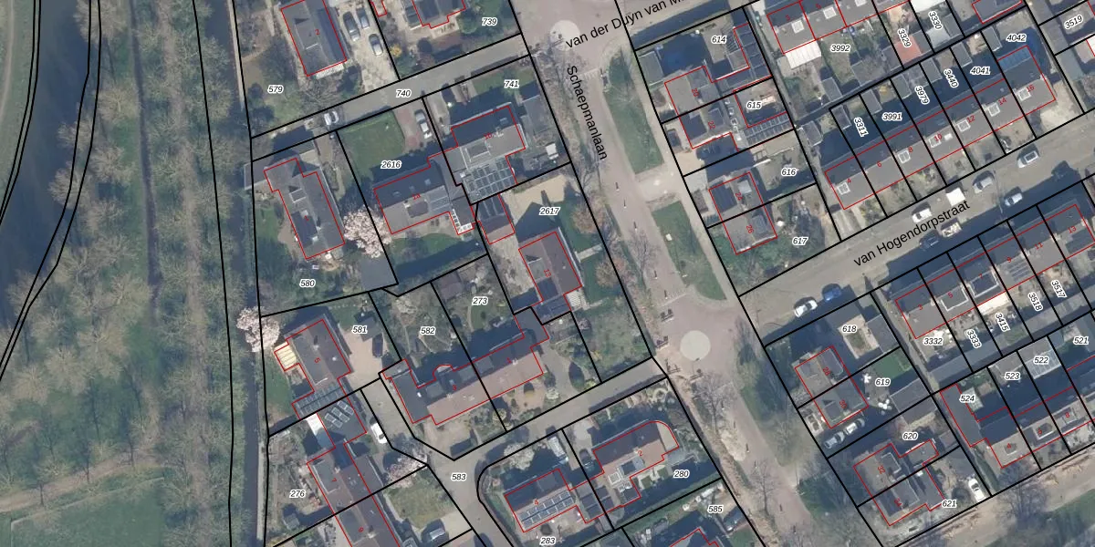 Het perceel waarop Schaepmanlaan 13 staat heeft een oppervlakte van 632 m². Dit is een groot perceel. De perceeloppervlakte wordt geregistreerd door het Kadaster. Gedetailleerde informatie over de maten van dit perceel kunt u vinden in het rapport Kadastrale kaart met maatvoering van Schaepmanlaan 13.