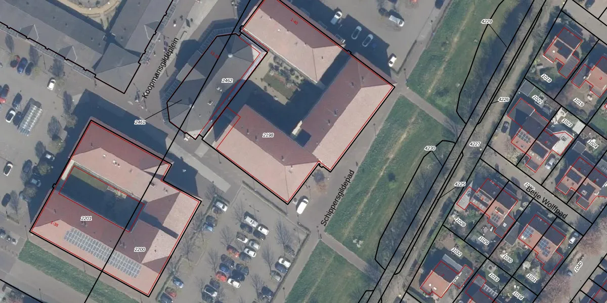 Het perceel waarop Schippersgildepad 18 staat heeft een oppervlakte van 2214 m². Dit is een zeer groot perceel. De perceeloppervlakte wordt geregistreerd door het Kadaster. Gedetailleerde informatie over de maten van dit perceel kunt u vinden in het rapport Kadastrale kaart met maatvoering van Schippersgildepad 18.