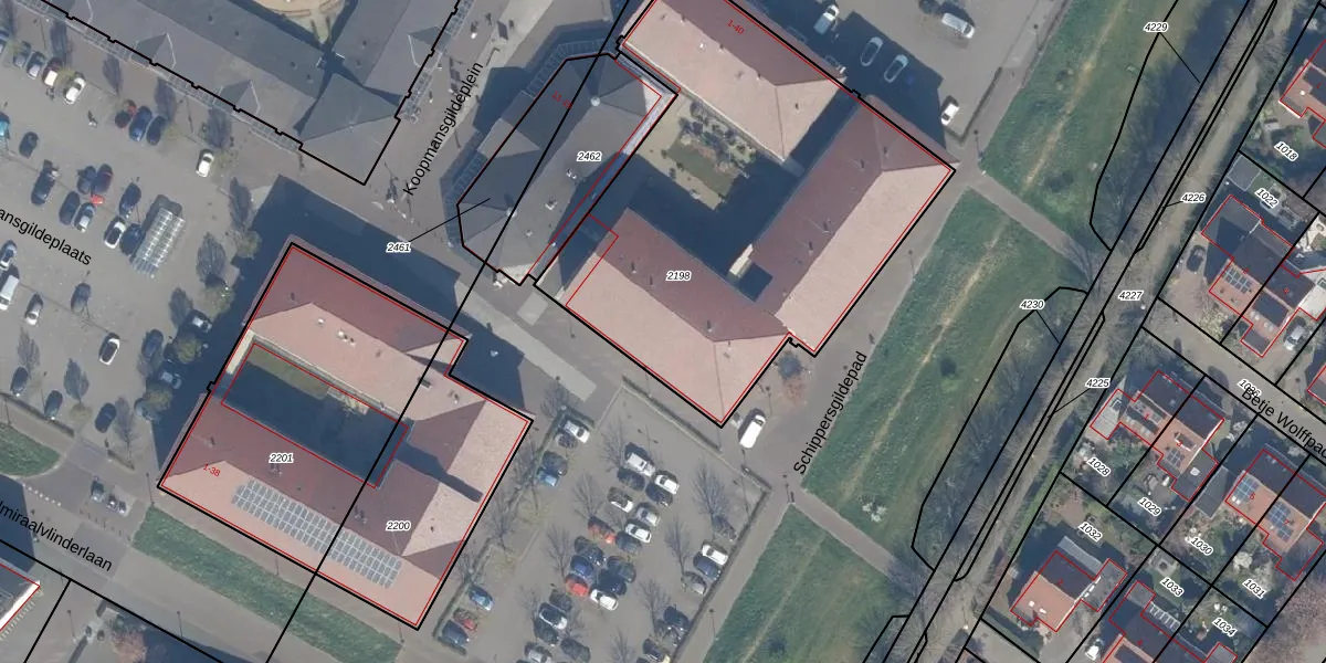 Het perceel waarop Schippersgildepad 21 staat heeft een oppervlakte van 2214 m². Dit is een zeer groot perceel. De perceeloppervlakte wordt geregistreerd door het Kadaster. Gedetailleerde informatie over de maten van dit perceel kunt u vinden in het rapport Kadastrale kaart met maatvoering van Schippersgildepad 21.