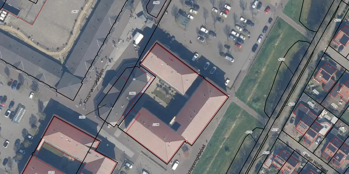 Het perceel waarop Schippersgildepad 36 staat heeft een oppervlakte van 2214 m². Dit is een zeer groot perceel. De perceeloppervlakte wordt geregistreerd door het Kadaster. Gedetailleerde informatie over de maten van dit perceel kunt u vinden in het rapport Kadastrale kaart met maatvoering van Schippersgildepad 36.