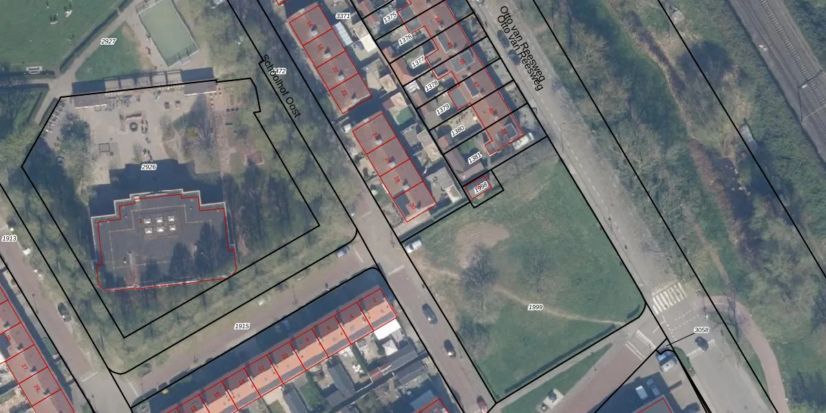 Het perceel waarop Schoolhof Oost 30 staat heeft een oppervlakte van 1615 m². Dit is een zeer groot perceel. De perceeloppervlakte wordt geregistreerd door het Kadaster. Gedetailleerde informatie over de maten van dit perceel kunt u vinden in het rapport Kadastrale kaart met maatvoering van Schoolhof Oost 30.