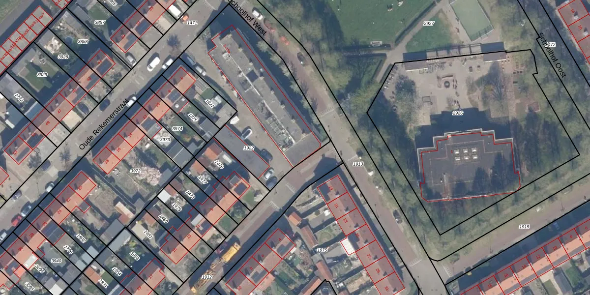 Het perceel waarop Schoolhof West 15 staat heeft een oppervlakte van 1511 m². Dit is een zeer groot perceel. De perceeloppervlakte wordt geregistreerd door het Kadaster. Gedetailleerde informatie over de maten van dit perceel kunt u vinden in het rapport Kadastrale kaart met maatvoering van Schoolhof West 15.