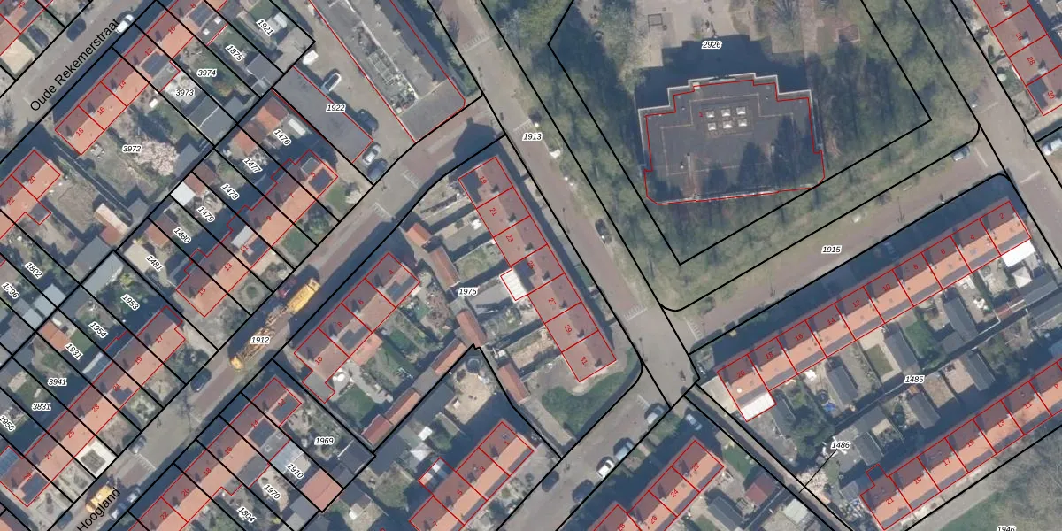 Het perceel waarop Schoolhof West 25 staat heeft een oppervlakte van 2150 m². Dit is een zeer groot perceel. De perceeloppervlakte wordt geregistreerd door het Kadaster. Gedetailleerde informatie over de maten van dit perceel kunt u vinden in het rapport Kadastrale kaart met maatvoering van Schoolhof West 25.