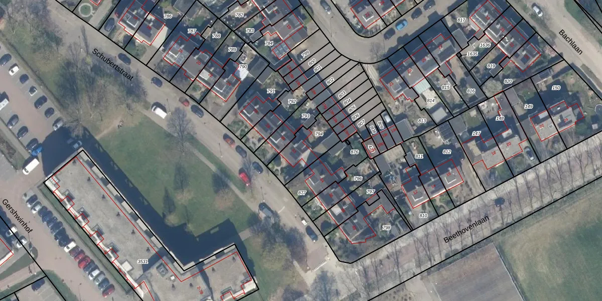 Het perceel waarop Schubertstraat 32 staat heeft een oppervlakte van 250 m². Dit is een middelgroot perceel. De perceeloppervlakte wordt geregistreerd door het Kadaster. Gedetailleerde informatie over de maten van dit perceel kunt u vinden in het rapport Kadastrale kaart met maatvoering van Schubertstraat 32.