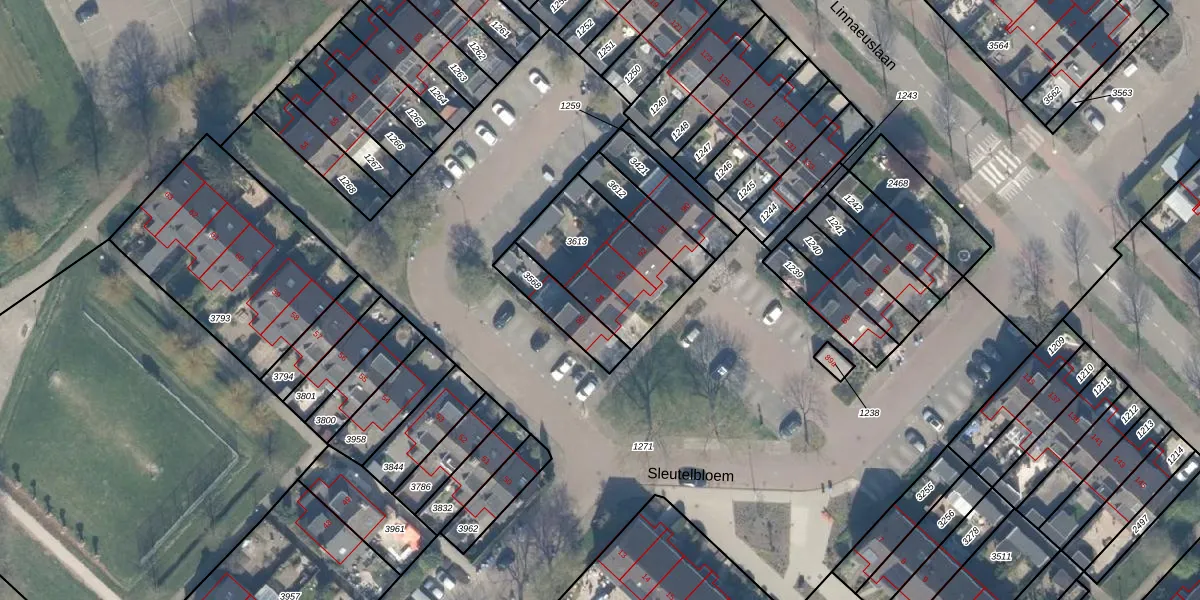 Het perceel waarop Sleutelbloem 94 staat heeft een oppervlakte van 407 m². Dit is een groot perceel. De perceeloppervlakte wordt geregistreerd door het Kadaster. Gedetailleerde informatie over de maten van dit perceel kunt u vinden in het rapport Kadastrale kaart met maatvoering van Sleutelbloem 94.