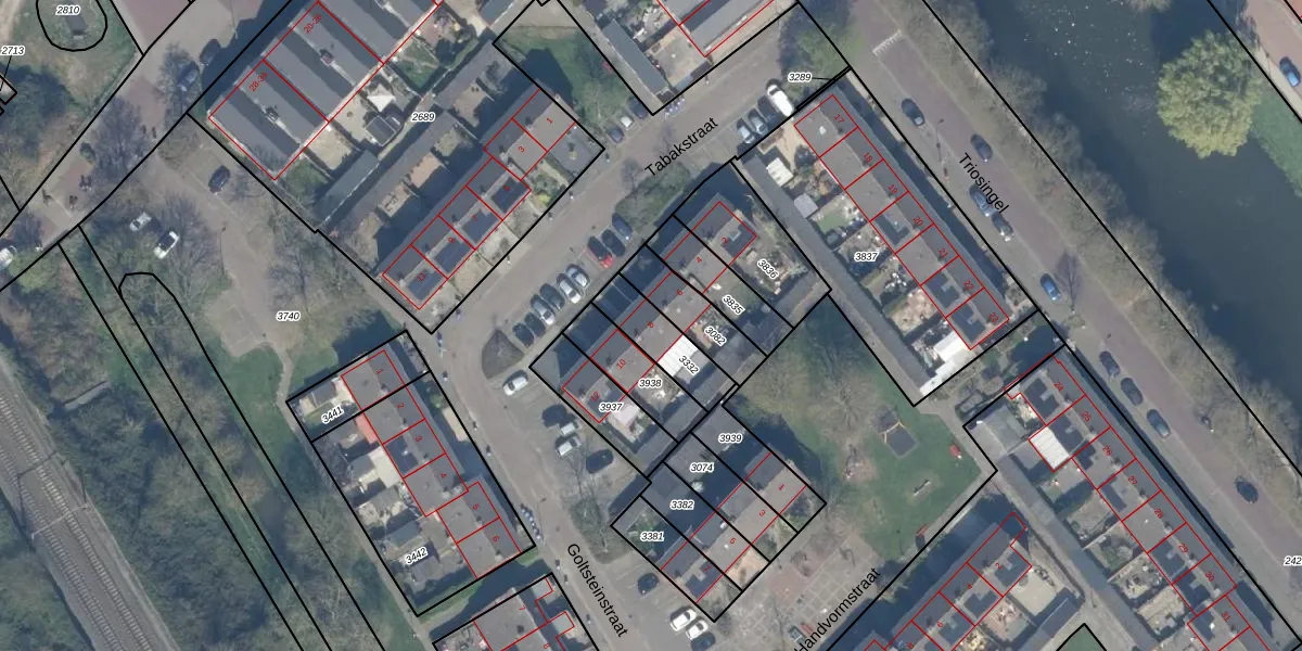 Het perceel waarop Tabakstraat 8 staat heeft een oppervlakte van 155 m². Dit is een middelgroot perceel. De perceeloppervlakte wordt geregistreerd door het Kadaster. Gedetailleerde informatie over de maten van dit perceel kunt u vinden in het rapport Kadastrale kaart met maatvoering van Tabakstraat 8.