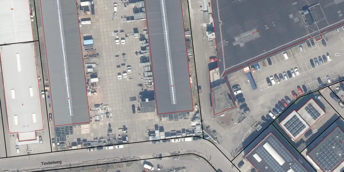 Het perceel waarop Textielweg 10 staat heeft een oppervlakte van 1,0 ha. Dit is een zeer groot perceel. De perceeloppervlakte wordt geregistreerd door het Kadaster. Gedetailleerde informatie over de maten van dit perceel kunt u vinden in het rapport Kadastrale kaart met maatvoering van Textielweg 10.