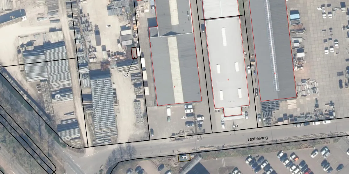 Het perceel waarop Textielweg 4 staat heeft een oppervlakte van 3713 m². Dit is een zeer groot perceel. De perceeloppervlakte wordt geregistreerd door het Kadaster. Gedetailleerde informatie over de maten van dit perceel kunt u vinden in het rapport Kadastrale kaart met maatvoering van Textielweg 4.