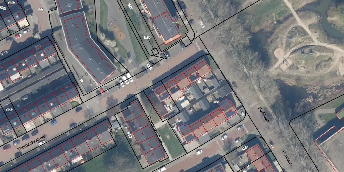 Het perceel waarop Thorbeckestraat 85 staat heeft een oppervlakte van 1630 m². Dit is een zeer groot perceel. De perceeloppervlakte wordt geregistreerd door het Kadaster. Gedetailleerde informatie over de maten van dit perceel kunt u vinden in het rapport Kadastrale kaart met maatvoering van Thorbeckestraat 85.