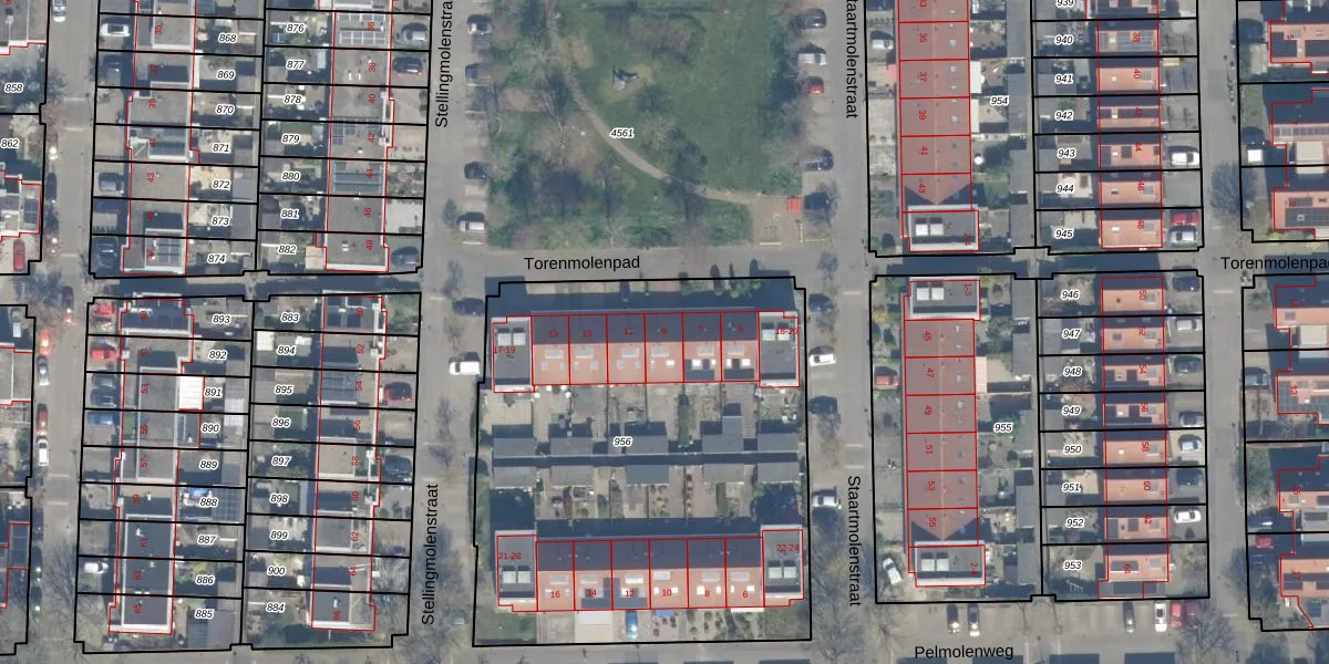 Torenmolenpad 9 is gelegen op kadastraal perceel CLB00N956. Deze kadastrale aanduiding is uniek en wordt gebruikt door het Kadaster om eigendomsrechten en andere zakelijke rechten vast te leggen. Het perceel maakt onderdeel uit van de kadastrale gemeente Culemborg.