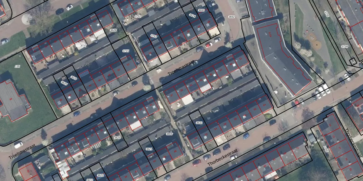 Troelstrastraat 39 is gelegen op kadastraal perceel CLB00K3806. Deze kadastrale aanduiding is uniek en wordt gebruikt door het Kadaster om eigendomsrechten en andere zakelijke rechten vast te leggen. Het perceel maakt onderdeel uit van de kadastrale gemeente Culemborg.