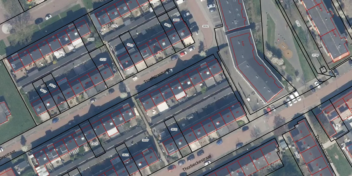 Het perceel waarop Troelstrastraat 43 staat heeft een oppervlakte van 5480 m². Dit is een zeer groot perceel. De perceeloppervlakte wordt geregistreerd door het Kadaster. Gedetailleerde informatie over de maten van dit perceel kunt u vinden in het rapport Kadastrale kaart met maatvoering van Troelstrastraat 43.