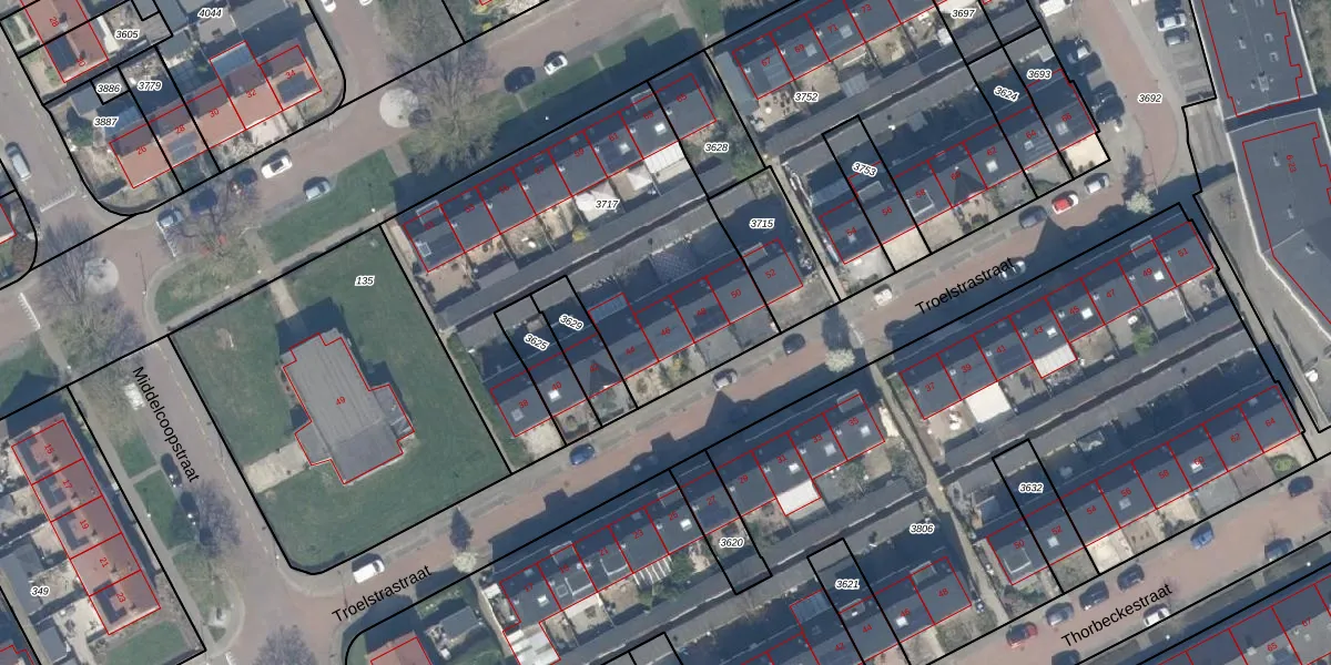 Het perceel waarop Troelstrastraat 46 staat heeft een oppervlakte van 1678 m². Dit is een zeer groot perceel. De perceeloppervlakte wordt geregistreerd door het Kadaster. Gedetailleerde informatie over de maten van dit perceel kunt u vinden in het rapport Kadastrale kaart met maatvoering van Troelstrastraat 46.