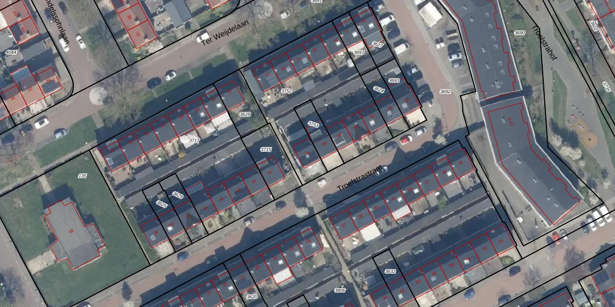Troelstrastraat 54 is gelegen op kadastraal perceel CLB00K3752. Deze kadastrale aanduiding is uniek en wordt gebruikt door het Kadaster om eigendomsrechten en andere zakelijke rechten vast te leggen. Het perceel maakt onderdeel uit van de kadastrale gemeente Culemborg.