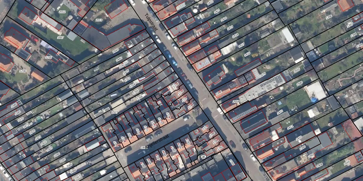 Gebruik de zoekbalk of klik op een perceel voor informatie over de adressen binnen dit perceel.