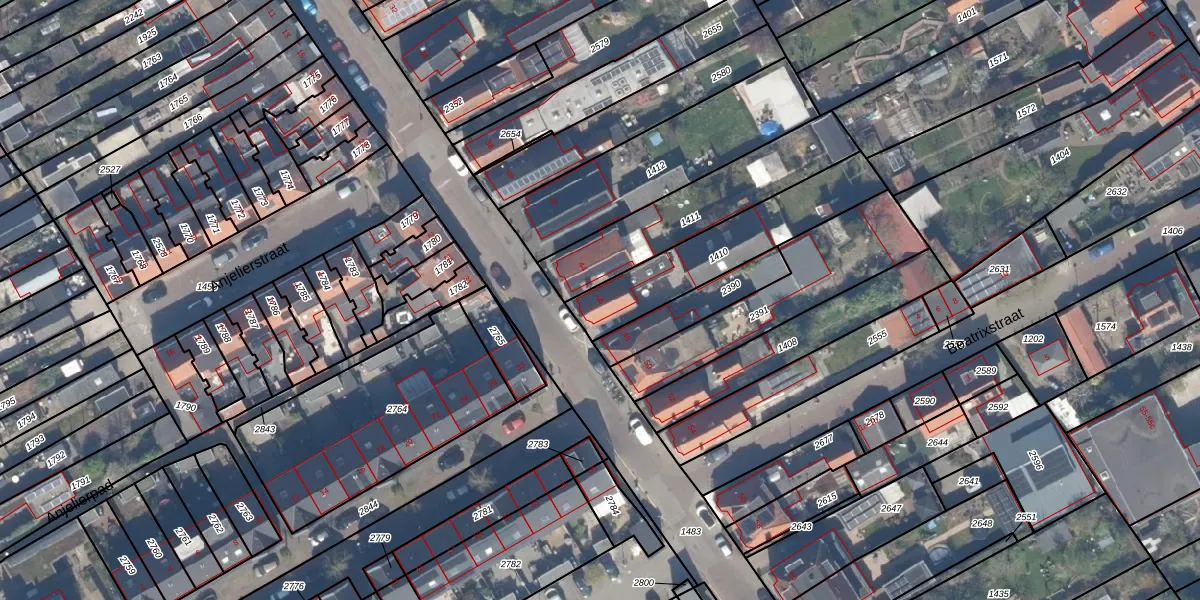 Gebruik de zoekbalk of klik op een perceel voor informatie over de adressen binnen dit perceel.