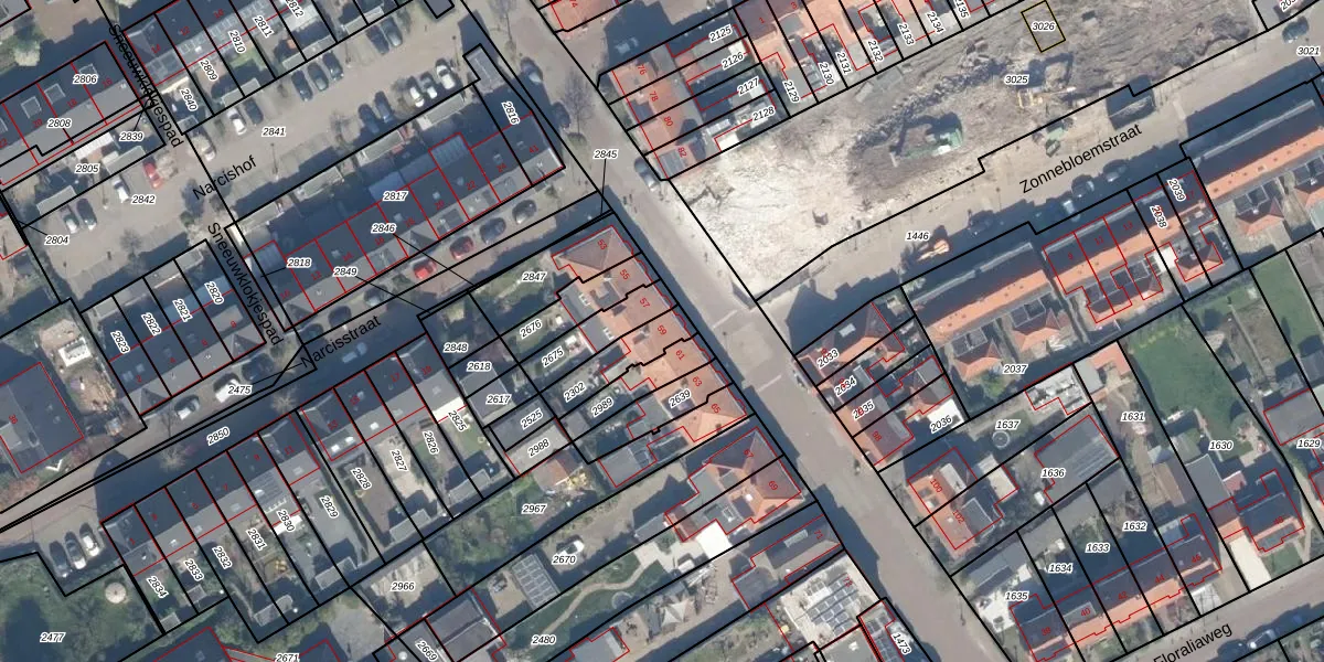 Gebruik de zoekbalk of klik op een perceel voor informatie over de adressen binnen dit perceel.