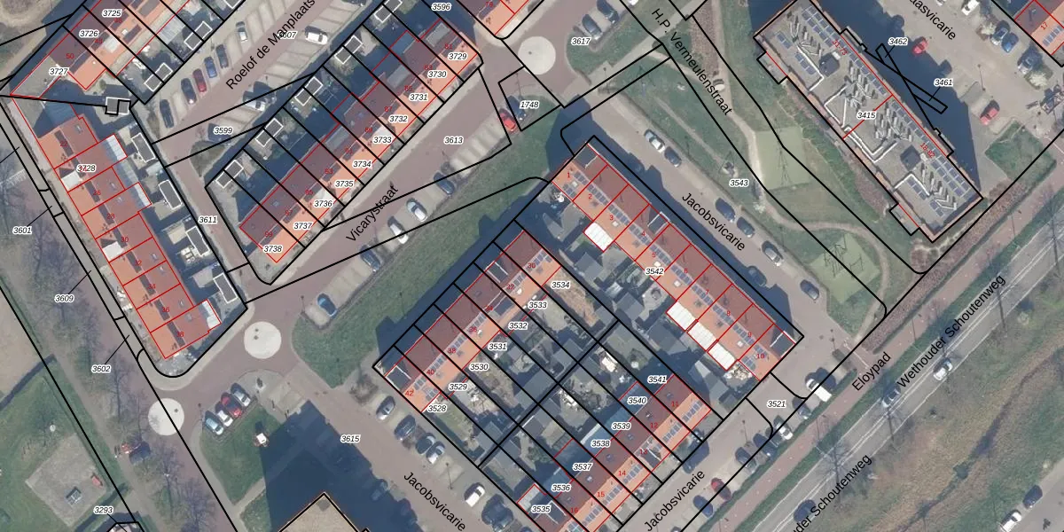 Gebruik de zoekbalk of klik op een perceel voor informatie over de adressen binnen dit perceel.