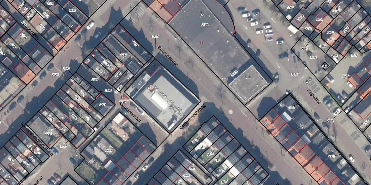 Vingerhoedsteeg 9 is gelegen op kadastraal perceel CLB00C2265. Deze kadastrale aanduiding is uniek en wordt gebruikt door het Kadaster om eigendomsrechten en andere zakelijke rechten vast te leggen. Het perceel maakt onderdeel uit van de kadastrale gemeente Culemborg.