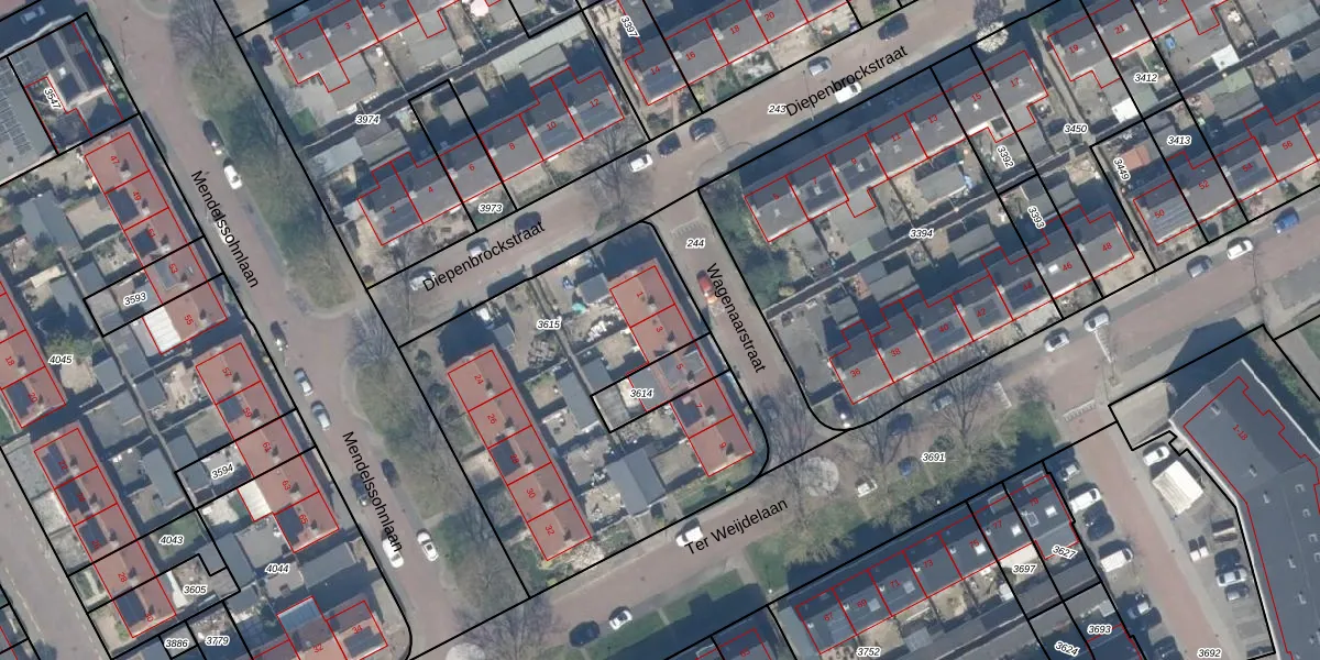 Het perceel waarop Wagenaarstraat 3 staat heeft een oppervlakte van 1707 m². Dit is een zeer groot perceel. De perceeloppervlakte wordt geregistreerd door het Kadaster. Gedetailleerde informatie over de maten van dit perceel kunt u vinden in het rapport Kadastrale kaart met maatvoering van Wagenaarstraat 3.