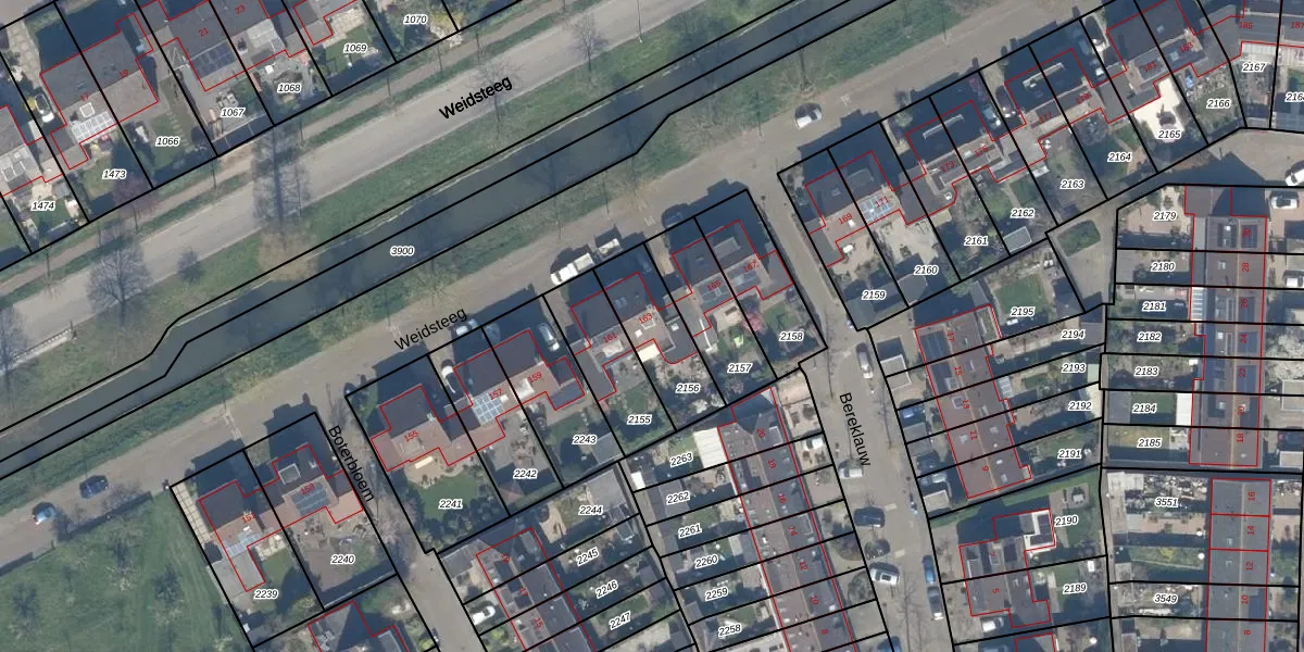 Het perceel waarop Weidsteeg 163 staat heeft een oppervlakte van 241 m². Dit is een middelgroot perceel. De perceeloppervlakte wordt geregistreerd door het Kadaster. Gedetailleerde informatie over de maten van dit perceel kunt u vinden in het rapport Kadastrale kaart met maatvoering van Weidsteeg 163.