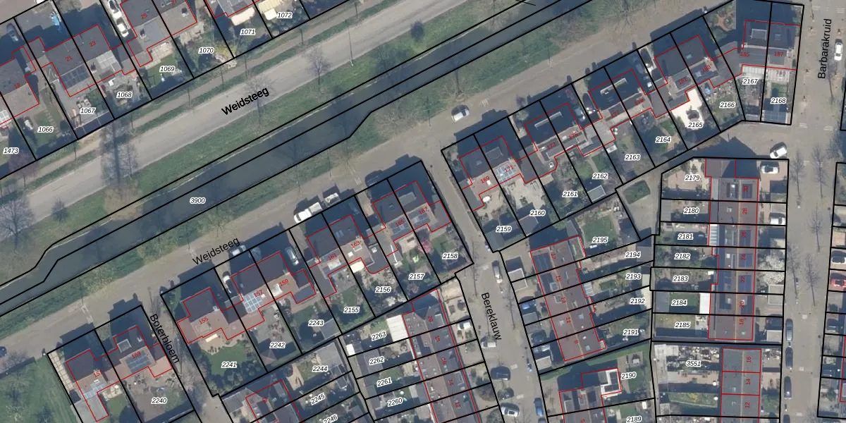 Het perceel waarop Weidsteeg 167 staat heeft een oppervlakte van 238 m². Dit is een middelgroot perceel. De perceeloppervlakte wordt geregistreerd door het Kadaster. Gedetailleerde informatie over de maten van dit perceel kunt u vinden in het rapport Kadastrale kaart met maatvoering van Weidsteeg 167.