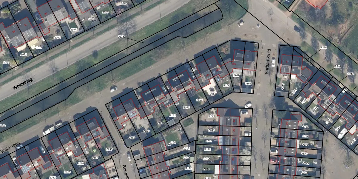 Weidsteeg 177 is gelegen op kadastraal perceel CLB00K2163. Deze kadastrale aanduiding is uniek en wordt gebruikt door het Kadaster om eigendomsrechten en andere zakelijke rechten vast te leggen. Het perceel maakt onderdeel uit van de kadastrale gemeente Culemborg.