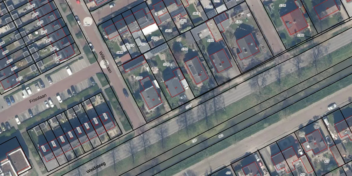 Weidsteeg 34 is gelegen op kadastraal perceel CLB00B1700. Deze kadastrale aanduiding is uniek en wordt gebruikt door het Kadaster om eigendomsrechten en andere zakelijke rechten vast te leggen. Het perceel maakt onderdeel uit van de kadastrale gemeente Culemborg.