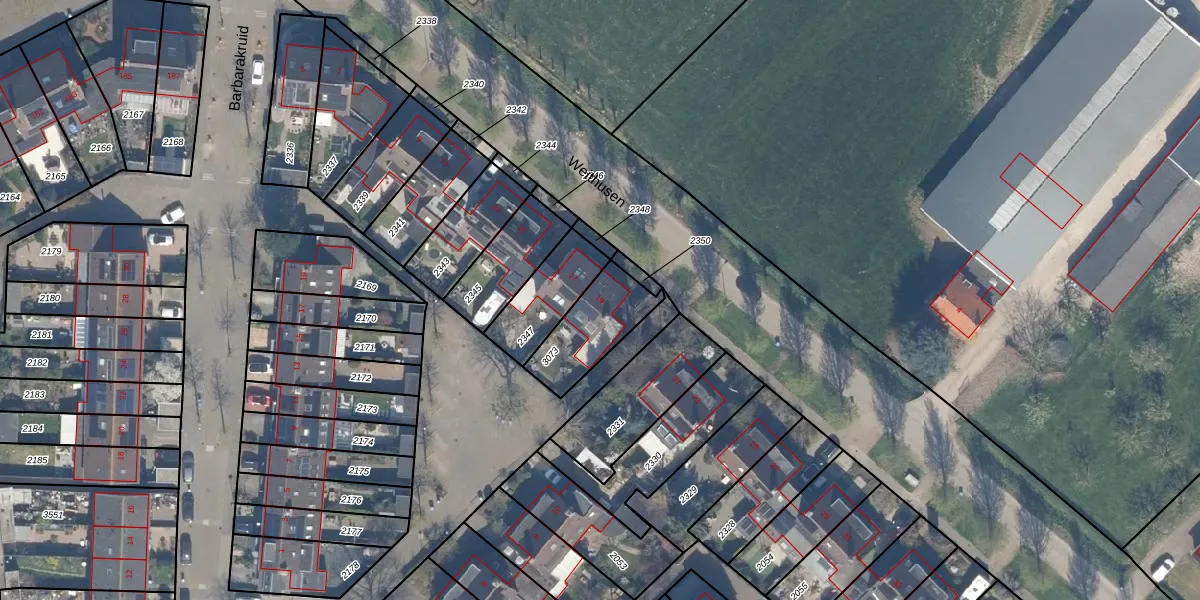 Gebruik de zoekbalk of klik op een perceel voor informatie over de adressen binnen dit perceel.