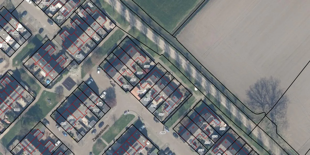 Gebruik de zoekbalk of klik op een perceel voor informatie over de adressen binnen dit perceel.